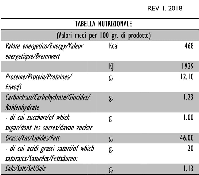 Come da tradizione subisce un processo di salagione a secco con una miscela di sale, aromi e spezie del territorio. La sua stagionatura è di ben oltre 120 giorni. Ha un colore rosa intenso, quasi rosso, su un fondo di lardello bianco candido.