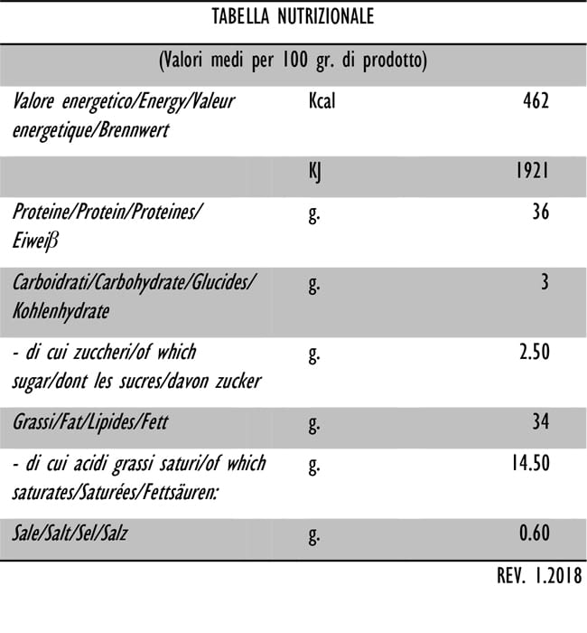 La stagionatura fino ad un minimo di 6 settimane, conferisce, insieme all’equilibrio tra sale, spezie e piante aromatiche selezionate, un sapore inconfondibile.