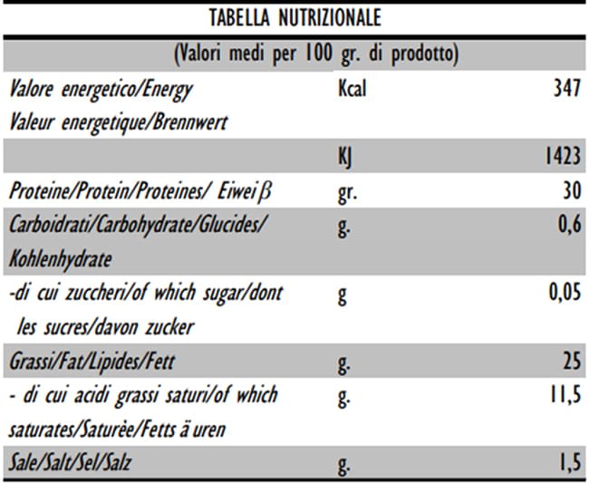 Nella sua forma classica “curva” o a “staffa”,si ottiene utilizzando i tagli centrali della spalla. La stagionatura fino ad un minimo di 6 settimane, conferisce, un sapore piccante.